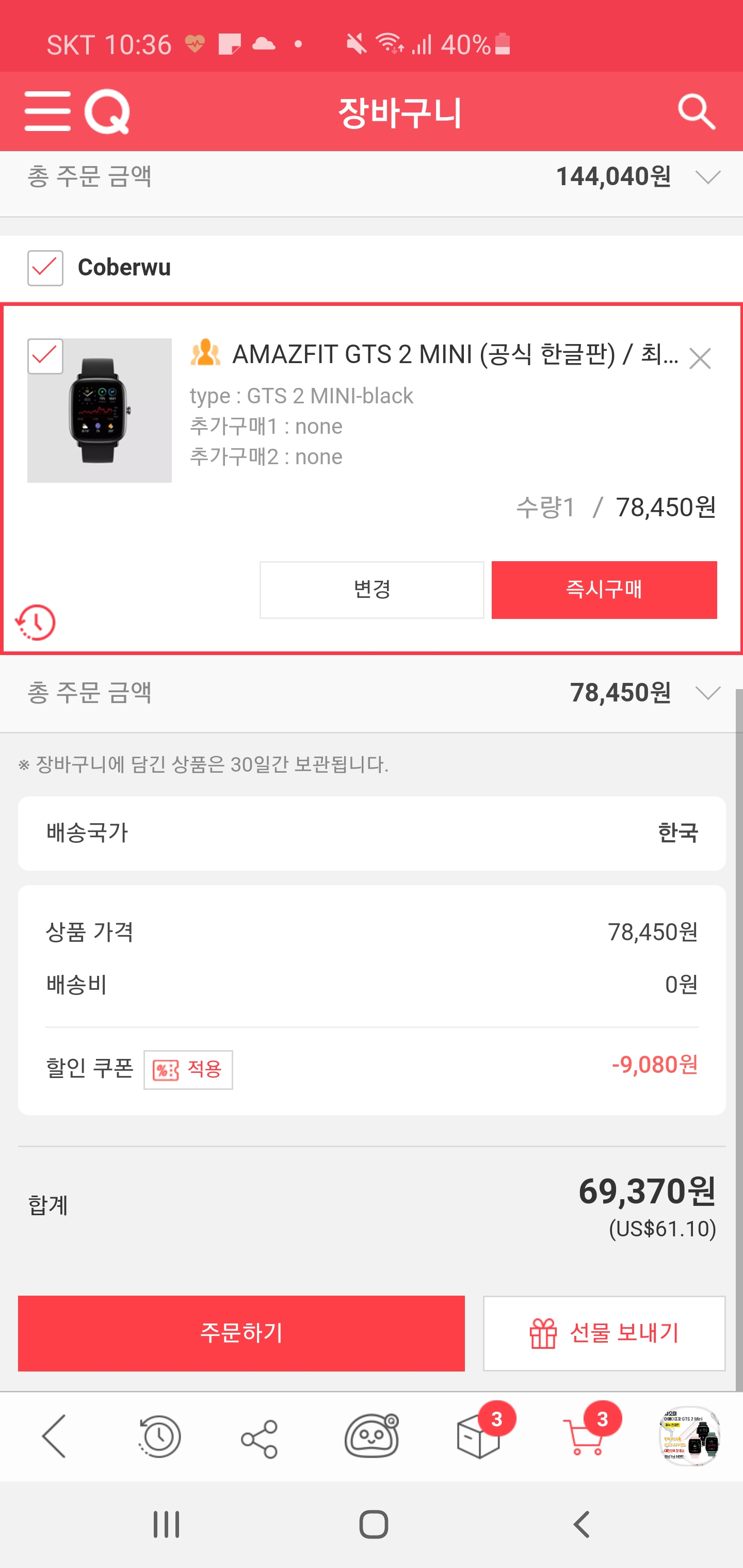 qoo10이 제일 저렴하고 국내사이트에서 사려면 위메프가 7.9만원이네요. 중국이나 유럽쪽 직구 할때 qoo10 최저가가 굉장히 많습니다. 배대지도 필요없고 결제도 네이버페이 페이코도 되니 편해서 한번 가입하면 계속 쓰게 되죠 ㅎㅎ
